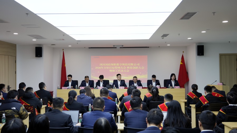 2月9日,川投数科召开2026年经营方针目标誓师大会、科技创新大会暨职工代表大会,传达学习了集团公司和川投信产2026年工作会精神,全面总结复盘公司2025年度生产经营、科技创新以及工会工作,分析研判当前面对的内外部形势,科学谋划2026年重点任务。川投信产党委委员、副总经理,川投数科党支部书记、董事长陈东出席会议并讲话。